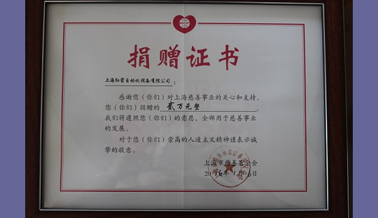 2014年,上海紅箭自動化設(shè)備有限公司為上海市慈善基金會捐款